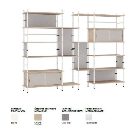 en L50 (2 niveaux). 2 Armoire. 2 Rayonnages avec 6 rayons.